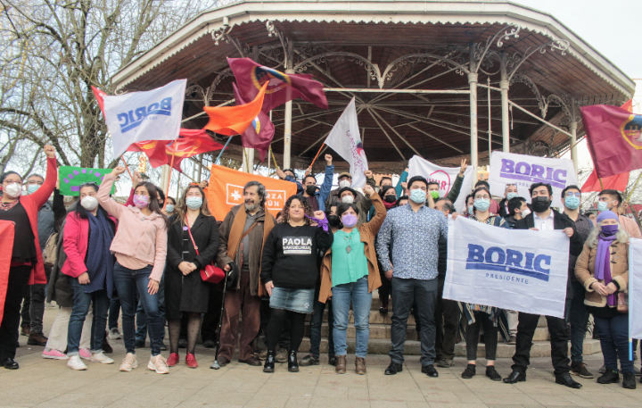 Justo en el día en el que se inició el periodo de campañas políticas, los representantes de Apruebo Dignidad celebraron un acto en la Plaza de La República, epicentro de celebraciones y reuniones sociales de la comuna, para lanzar sus candidaturas.