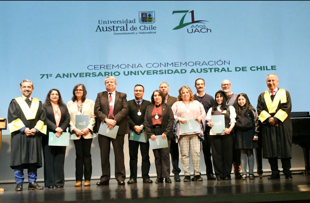 En esta ceremonia, la comunidad universitaria reconoció a los y las docentes, funcionarias y funcionarios que este año recibieron la Medalla 25 años, símbolo de su trayectoria en la UACh. Recibieron la distinción de manos del Rector Egon Montecinos y del Prorrector, Gustavo Blanco, las siguientes personas: Pamela Arancibia Hernández; Andrea Báez Montenegro; Juan Carlos Cárdenas Riquelme; Ruth Noemi Espinoza Fuentealba; Roberto Cesar Freraut Santander; Héctor Huequeman Rivera; Carlos Le Quesne Geier; Ana María Morales Assef.